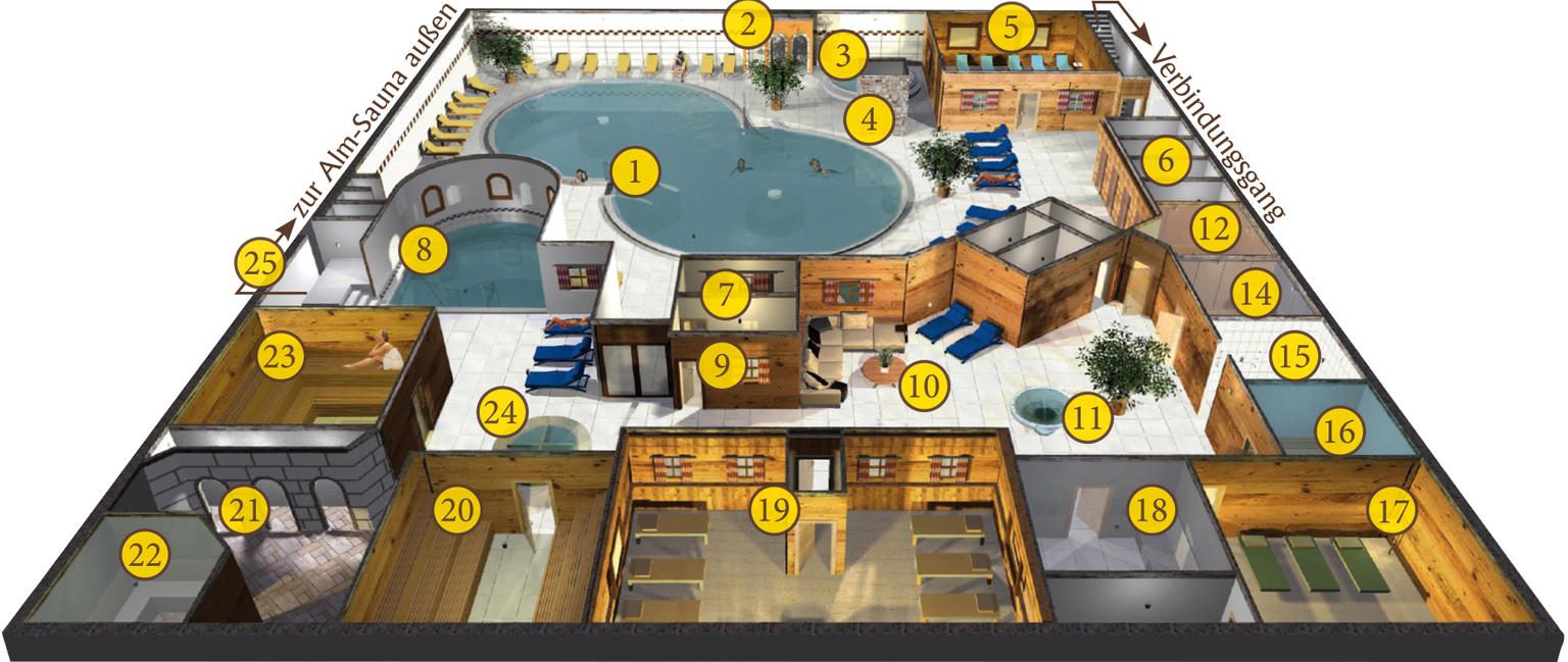 The Wellness Alm uniquely combines the cosiness of a traditional alpine hut with the modern comfort of a luxurious wellness facility. With its alpine design, warm wooden elements, rustic accents and cosy ambience, it creates an inviting atmosphere in which you will immediately feel at home.
