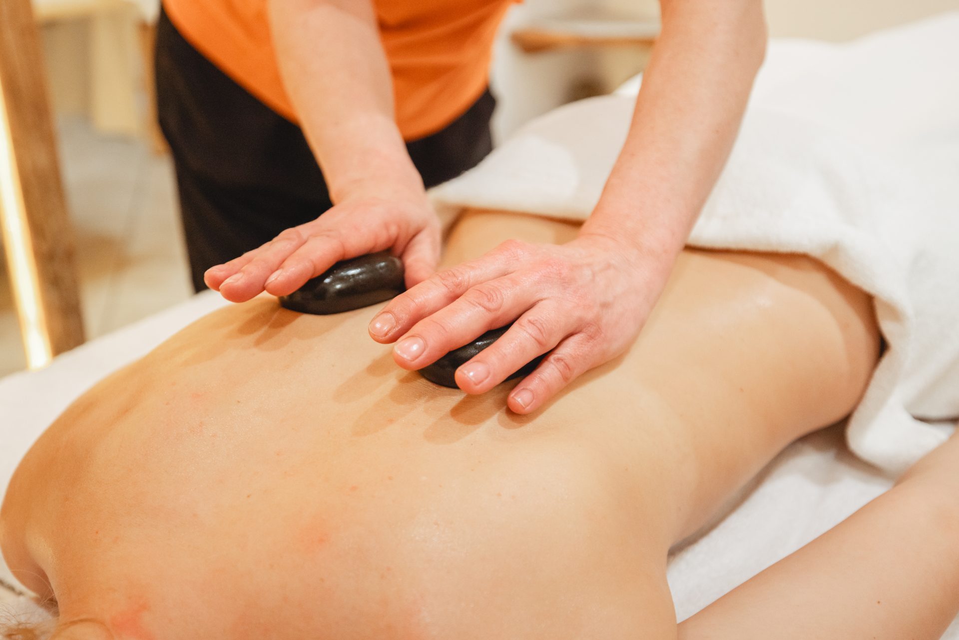 Gönnen Sie sich eine wohltuende Auszeit und lassen Sie sich in unserer Massageoase rundum verwöhnen. Unser vielfältiges Massageangebot reicht von klassischen Behandlungen wie der Ganzkörper- oder Teilkörpermassage bis hin zu speziellen Anwendungen wie der Hot Stone Massage. Dabei verwenden wir ausschließlich 100% naturreine Basisöle und ätherische Öle, die nicht nur die Wirkung der Massage verstärken, sondern auch Ihre Sinne verwöhnen.